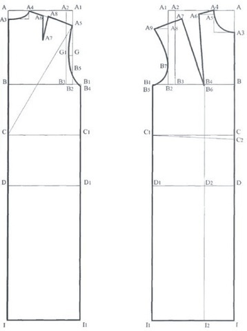 Построение спинки Строим прямой угол из точки А. АВ = высота проймы сзади (Впрс ) + прибавка. (Пример: 23 см + 3 см = 26 см.) АС = длина спины до талии (Дст )+ прибавка. (Пример: 42 см + 2 см = 44 см.) CD = высота линии бедер (Вб). (Пример: 18 см. Подробнее...